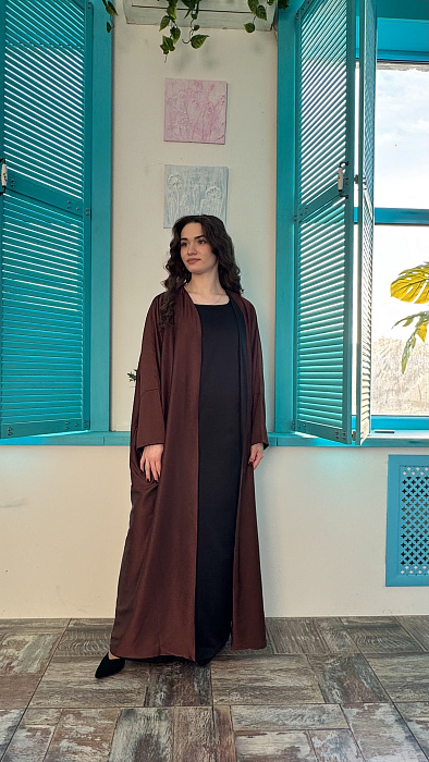 Эта абая-накидка – универсальный элемент гардероба, который легко сочетается с различными стилями и образами. Носите ее поверх элегантного платья, чтобы создать вечерний образ для особого случая, или сочетайте с любимыми брюками для создания стильного и комфортного повседневного наряда. Она станет прекрасным дополнением вашего гардероба, отражая ваш безупречный вкус и индивидуальность.