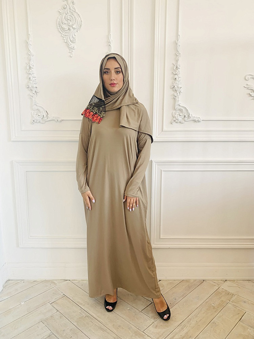 Представляем Вам мусульманское платье для молитвы. Красивое платье из штапеля люкс сделано свободного покроя оверсайз. Палантин вшит в горловину платья , что удобно для молитвы. Также у платья есть молния для удобства. Платье длины макси.