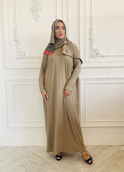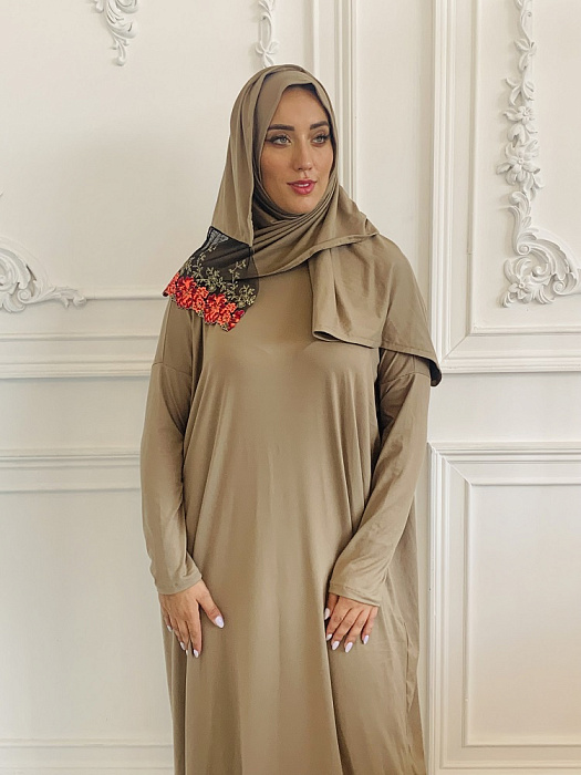 Мусульманское платье для молитвы из штапеля люкс с вышивкой. Палантин вшит в платье.