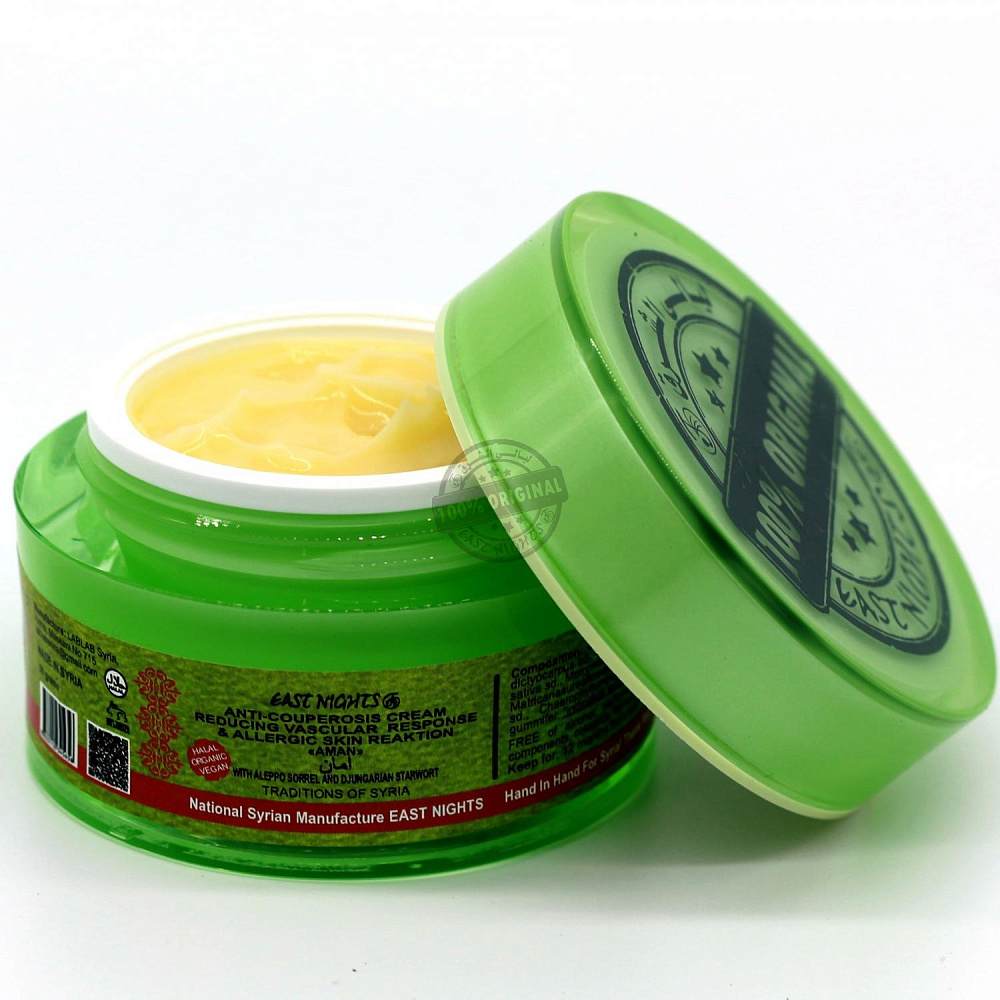 Специалисты компании East Nights знают, как женщинам важно эффектно выглядеть, поэтому они разработали уникальный крем AMAN «Вверенный на хранение» с алеппским щавелем и звездчаткой джунгарской. Традиционная авторская рецептура этого средства помогает справиться даже с ярко выраженным куперозом и аллергией, успокаивает кожу, проникает глубоко внутрь и запускает процесс регенерации. Алеппский щавель купирует воспаление и ухаживает за кожей, а звездчатка джунгарская способствует укреплению каппиляров, обладает антибактериальными свойствами и быстро решает большинство кожных проблем.