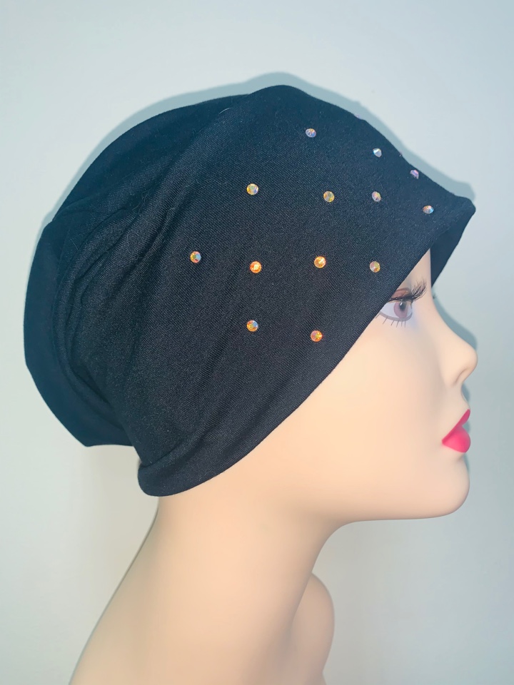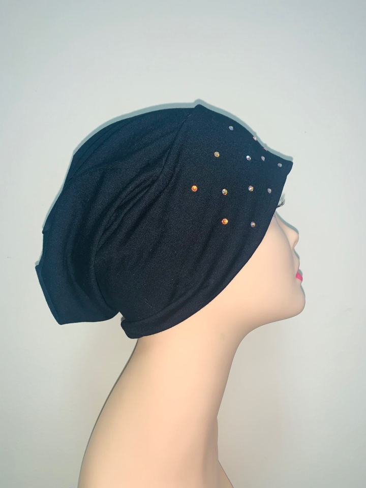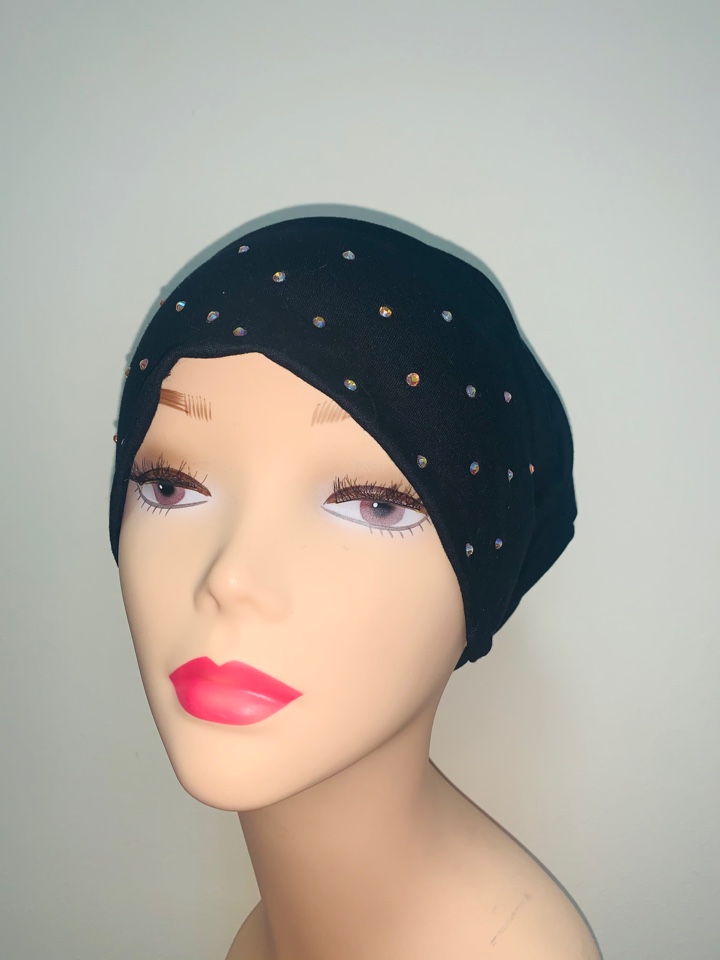 Красивая бони из стрейч трикотажа - хлопок и лайкра. Украшена стразами.