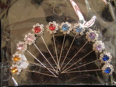 Булавки для хиджабов с разноцветными камнями. Металл и стразы. Цена за 1шт