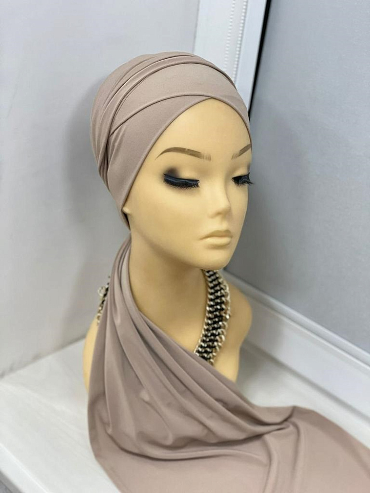 Красивая чалма светло-серого цвета из трикотажа. Готовый хиджаб