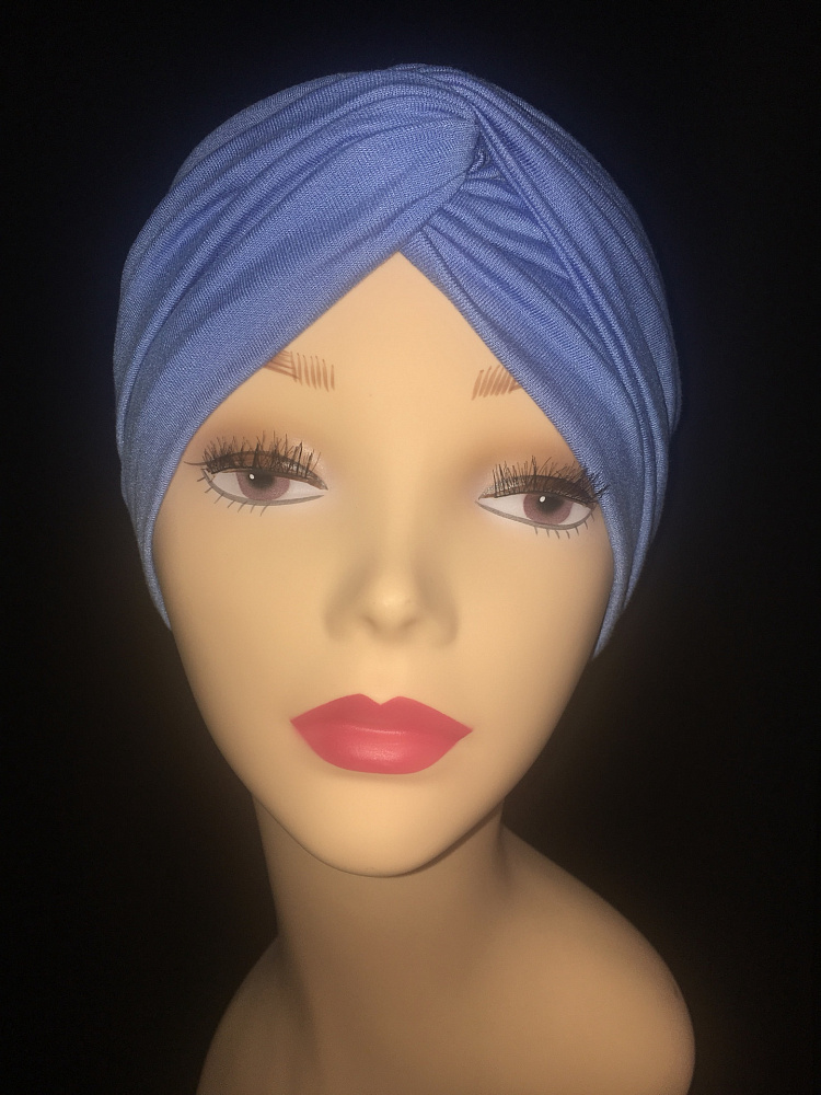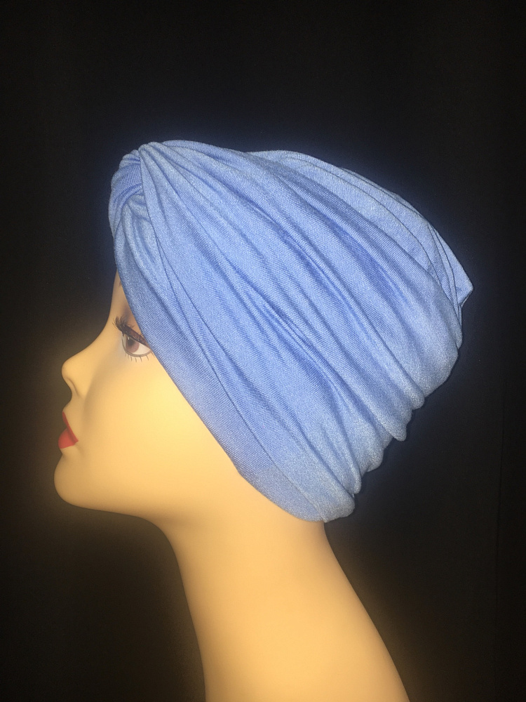 Роскошная чалма из силк вискозы голубого цвета. Будет красиво смотреться под классическое платье и под спортивный стиль одежды. Производство Ателье Фатмафэшн