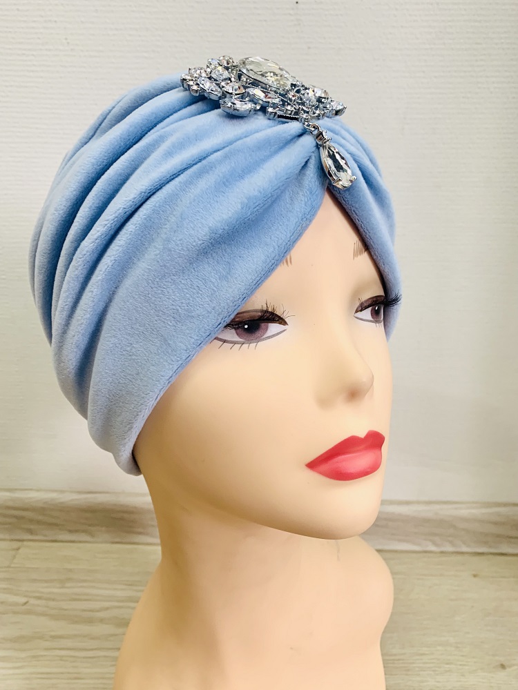 Красивая чалма голубого цвета с брошкой, ткань - королевский бархат