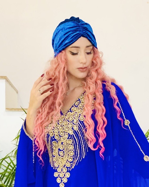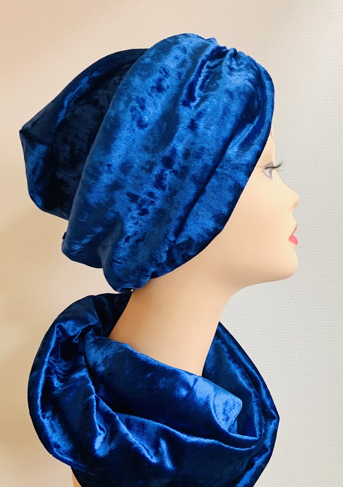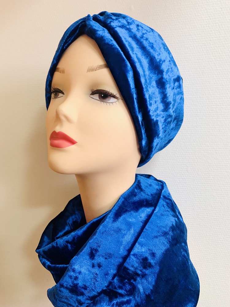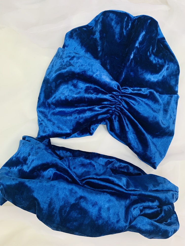 Красивая чалма с хомутом цвета синий электрик, ткань - королевский бархат