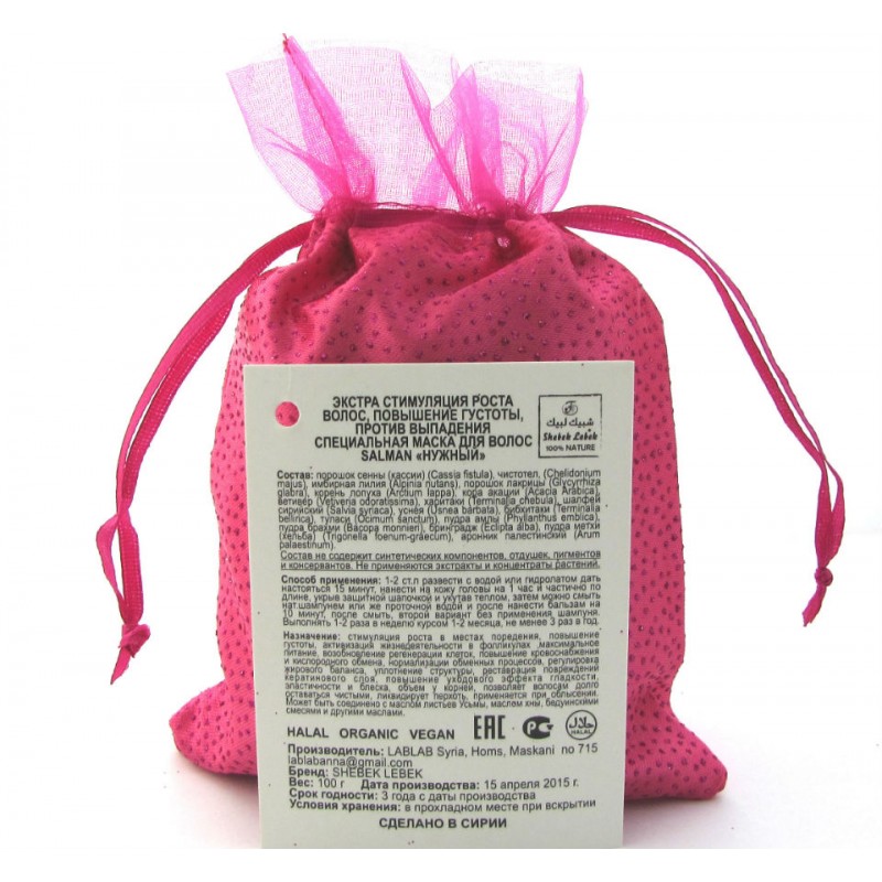 Органическая маска для стимулирования роста волос, а также для борьбы с проблемой выпадения волос SALMAN "Нужный". Свойства маски:
