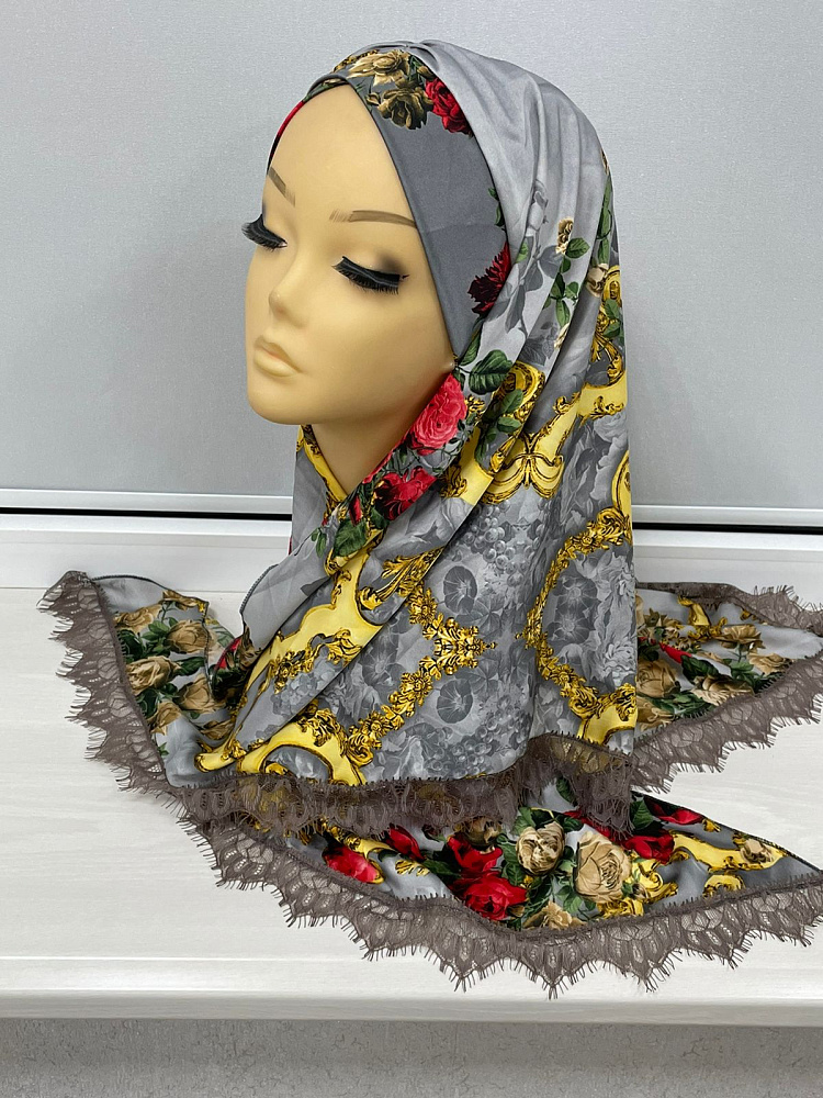 Роскошный готовый шелковый хиджаб платок с кружевом с красивым принтом