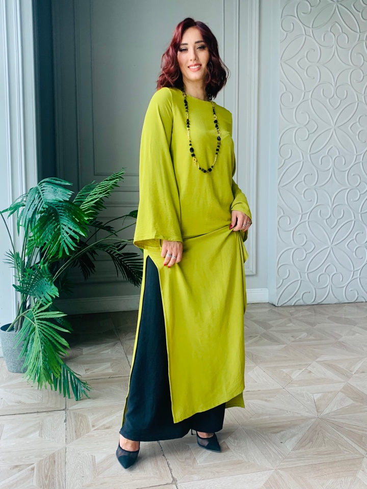 Стильный костюм двойка удлиненная туника и брюки. Женский костюм на лето. Размер от 44 до 48. ТКань - манго.