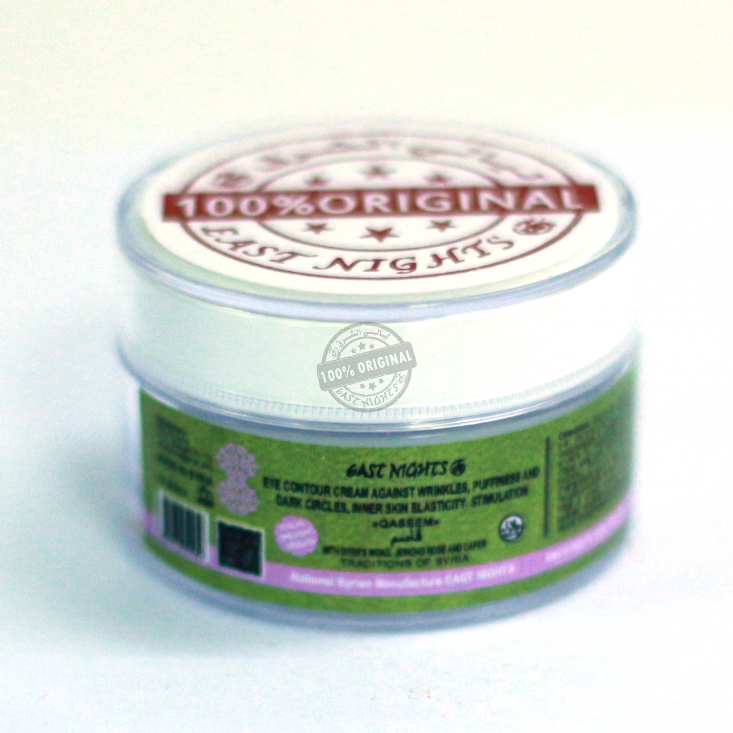 В основе QASEEM сильнейшая троица знакомых уже покупателям по другим органическим составам Национального сирийского производства East Nights – масло семян усьмы, масло иерихонской розы и масло каперсов. Каждый элемент из них уникален. Так масло семян усьмы, сделано из семян вайды красильной методом первого холодного прессования, и оно прекрасно справляется с проблемами кожи, потерявшей тургор. Масло семян усьмы эффективное кожное масло для устранения дряблости эпидермиса. В масле содержатся компоненты, увеличивающие кровоснабжение в клетках, поэтому при использовании составов с этим компонентом, надо тщательно избегать контакта с зоной слизистой глаз. Наносят состав только на кожу век и под глазами, отступая от приресничной зоны на некоторое расстояние.