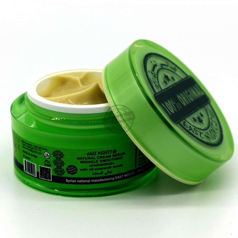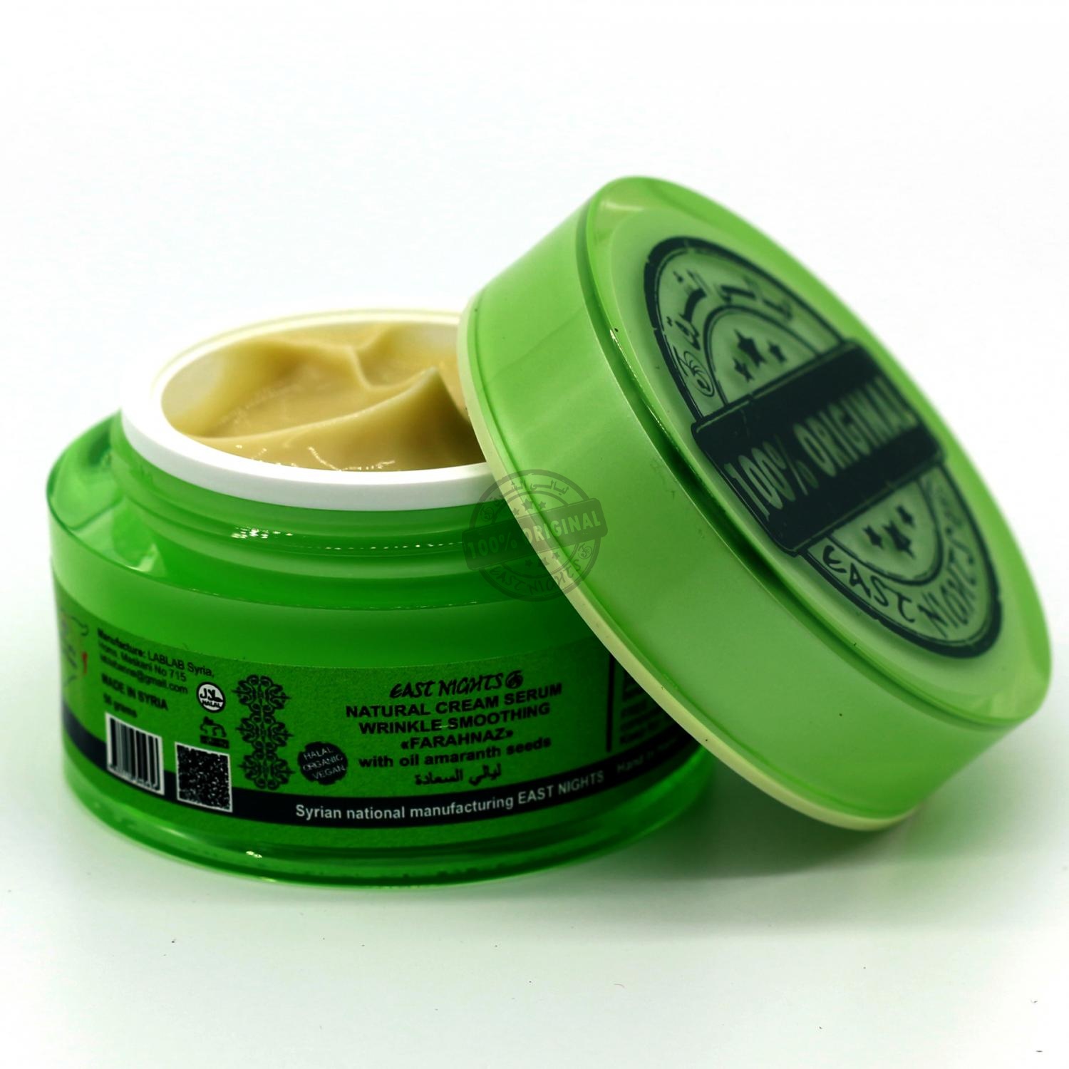 Разглаживающая крем-сыворотка против морщин от Национального сирийского производства East Nights, сохраняя молодость кожи, станет помощником на годы вперед, создавая пролонгированный антивозрастной эффект.