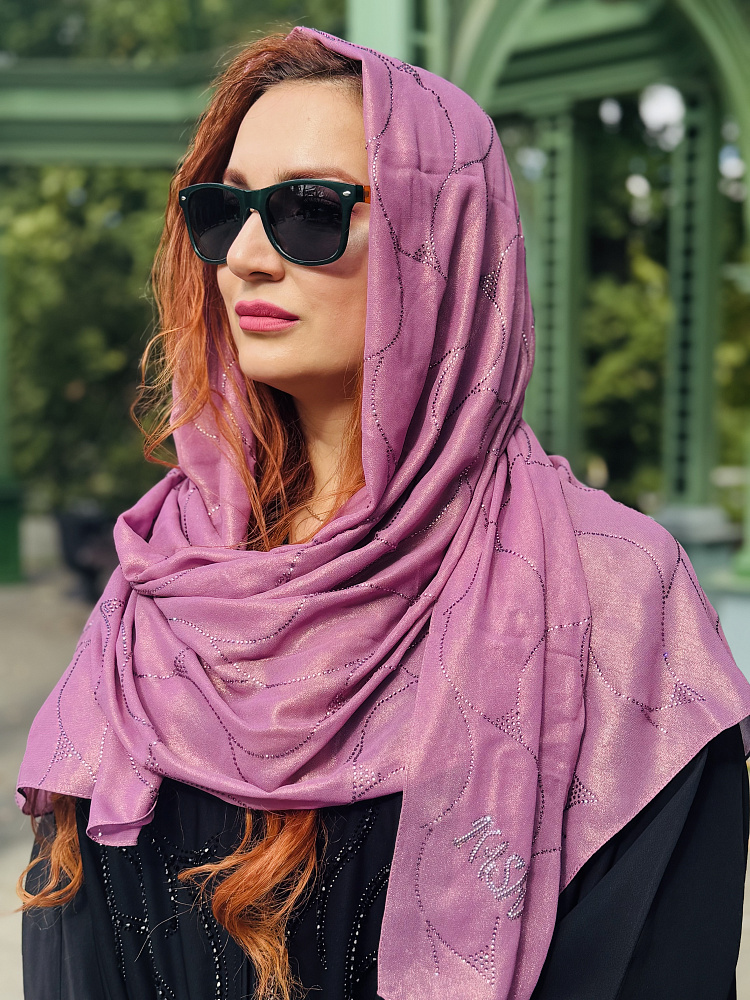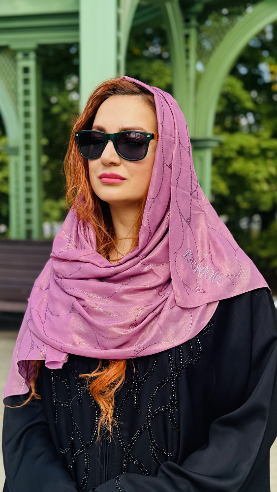 Элитный палантин хиджаб известного бренда из Объединенных арабских эмиратов Kashkha, лилового цвета люкс со стразами. Размер 70 на 170.