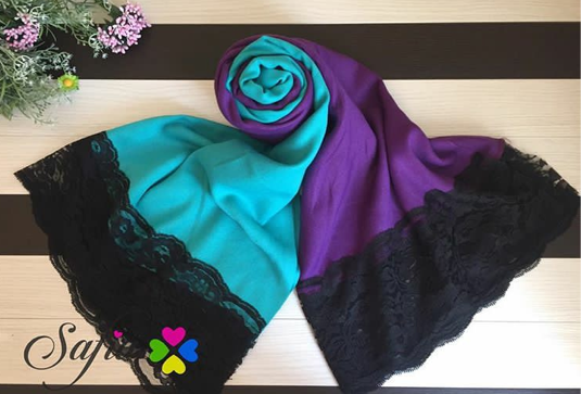 Изысканный палантин из пашмины с кружевом . Размер 180*70см. производство Турция.