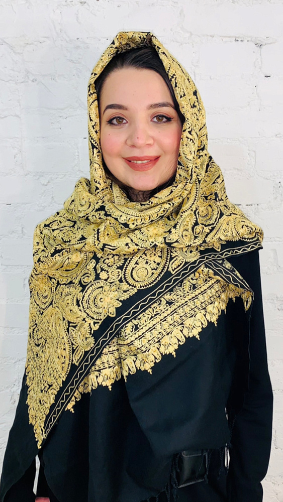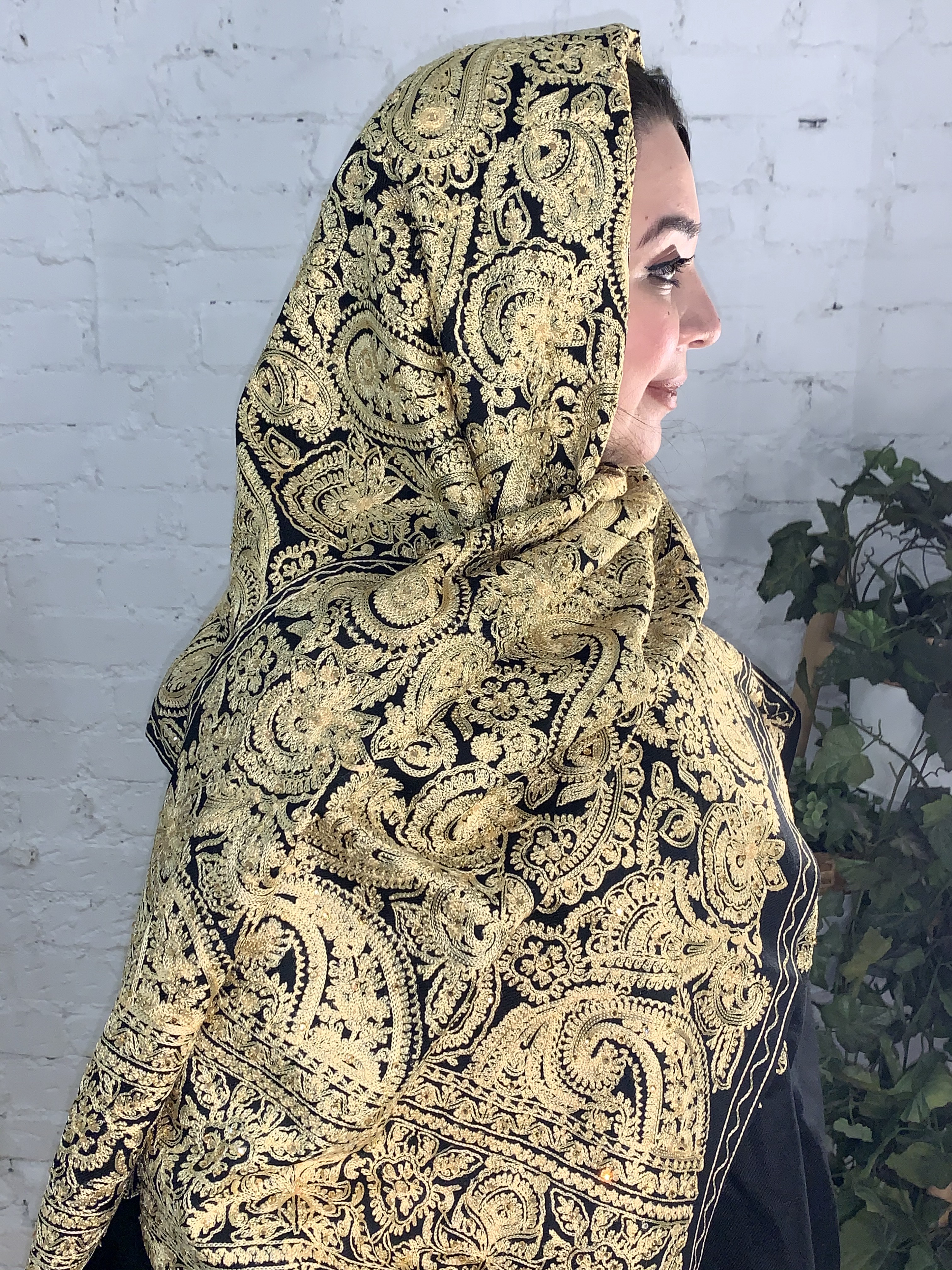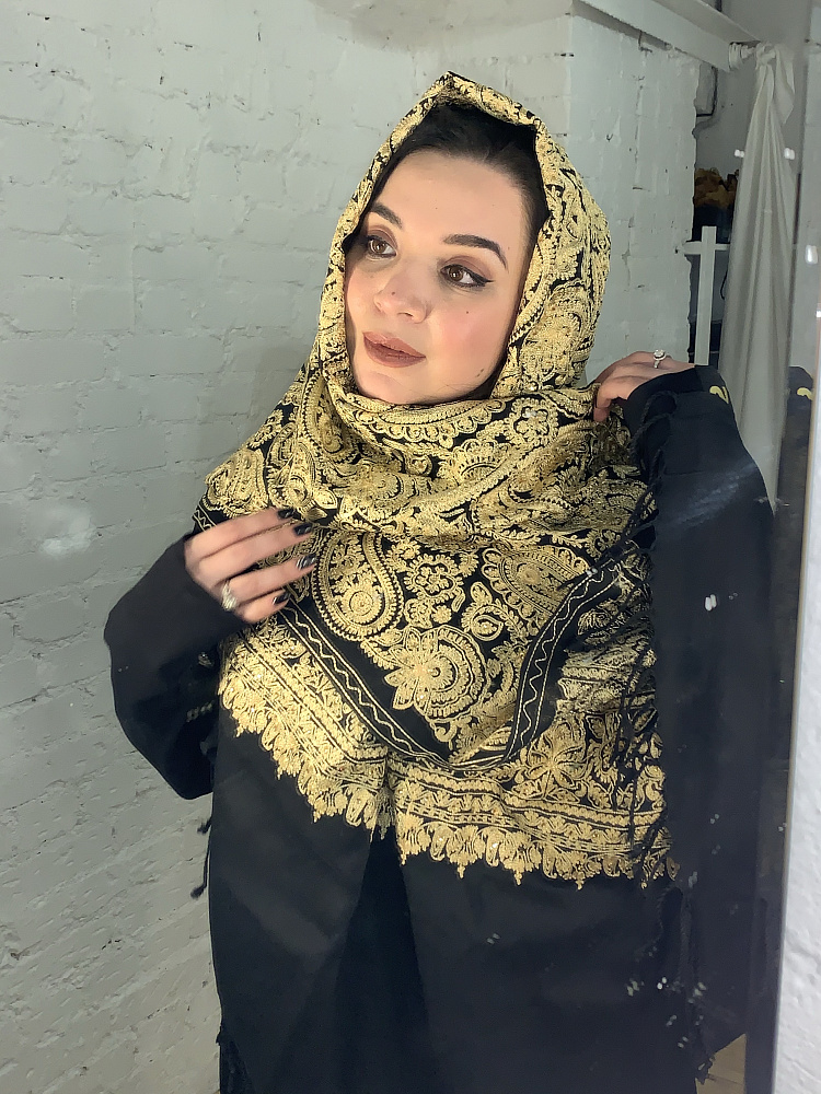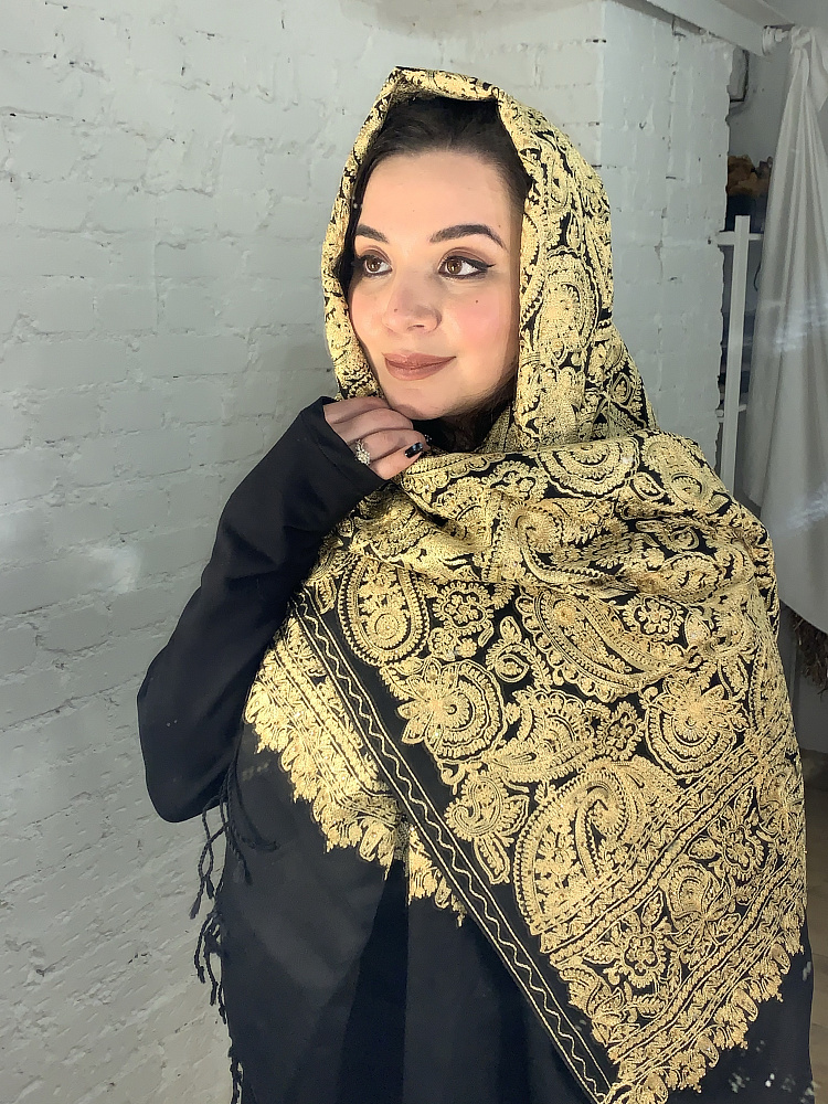 Изысканный палантин с восточным орнаментом из кашемира и с ручной вышивкой и стразами. Производство Индия