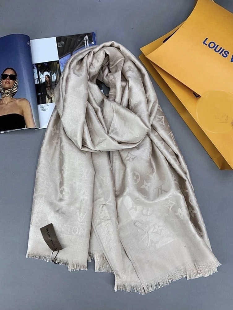 Стильный палантин в бежеовой гамме, состав вискоза 70% и шелк 30%. Размер 80*180