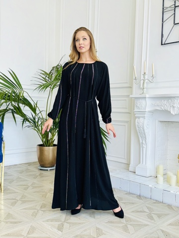 Абая с декором из страз . Прилагается палантин и пояс . Размер единый 44-52. Длина макси. Производство ОАЭ