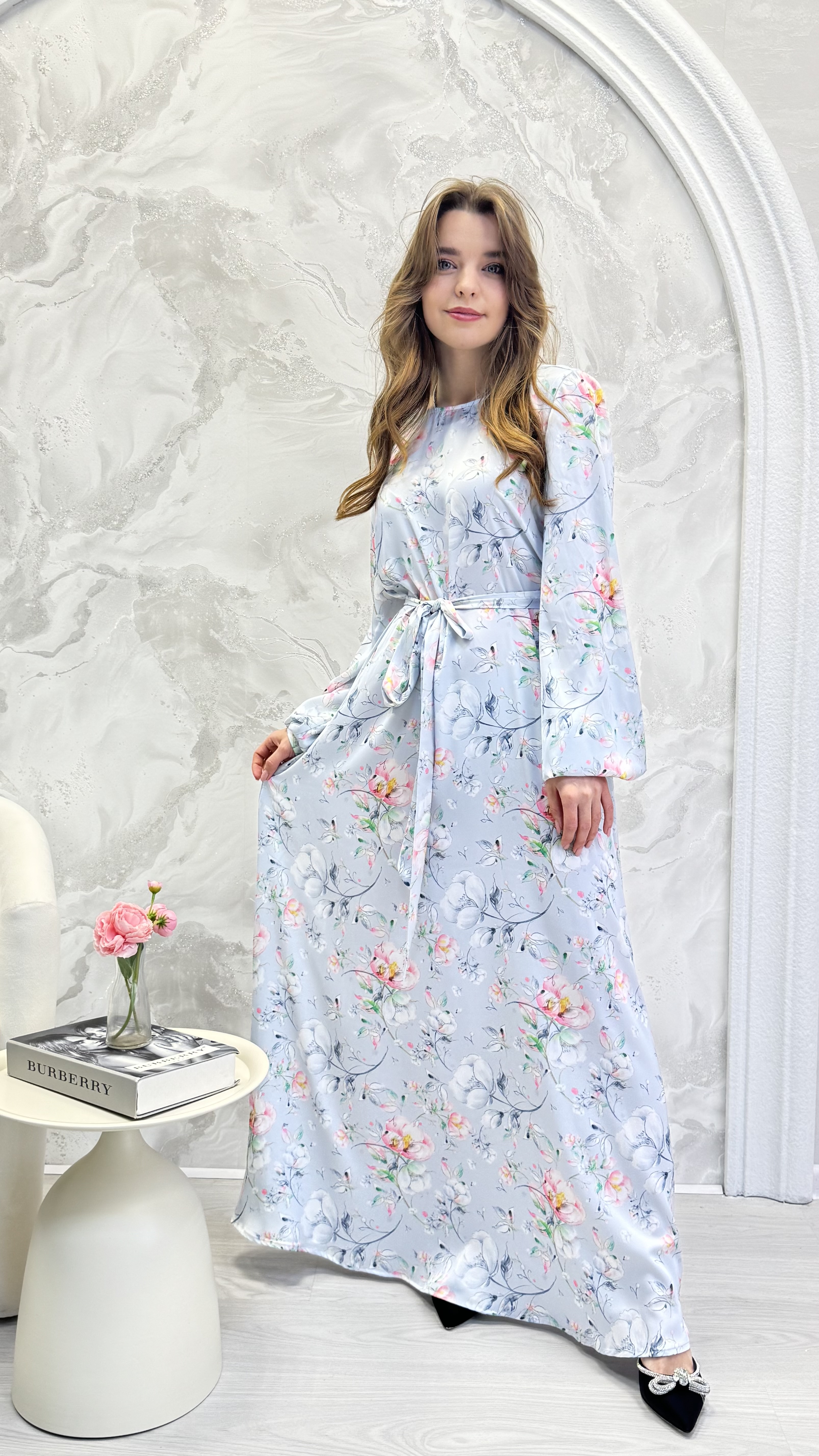 Красивое летнее платье с нежным принтом из ткани шелк Армани люкс. Размеры от 44 до 50. Длина макси