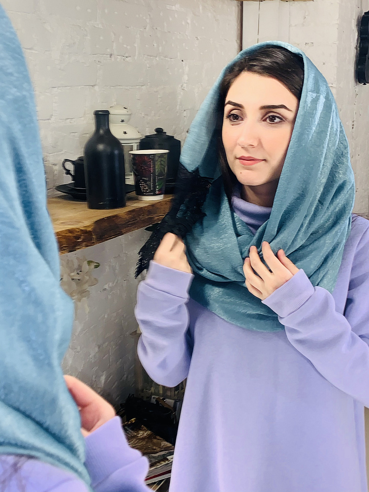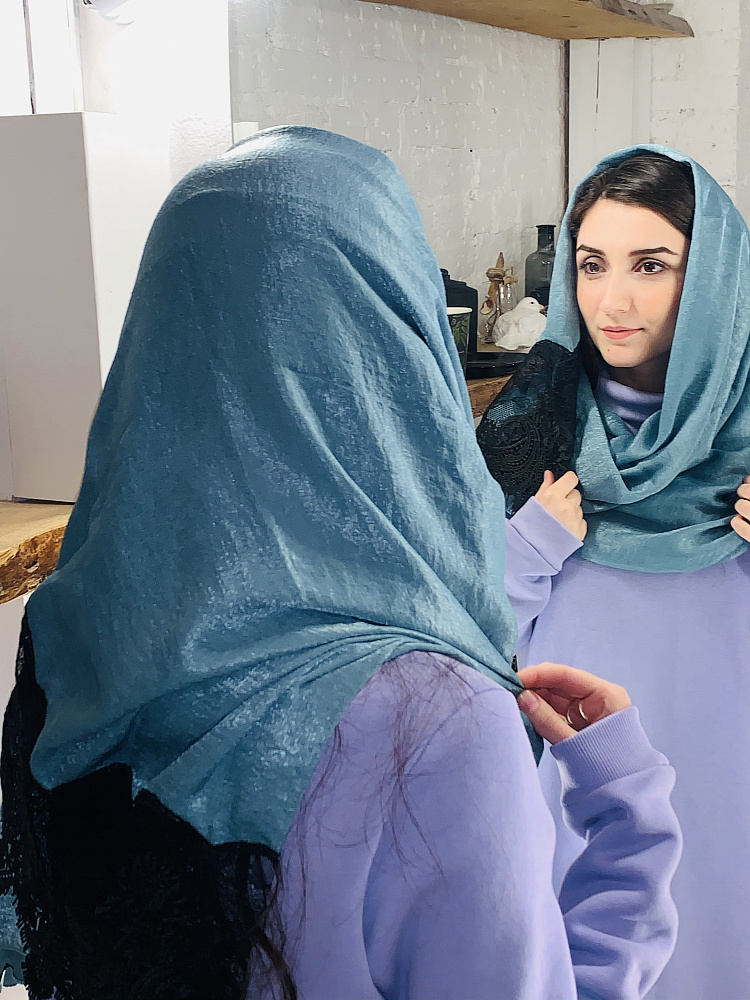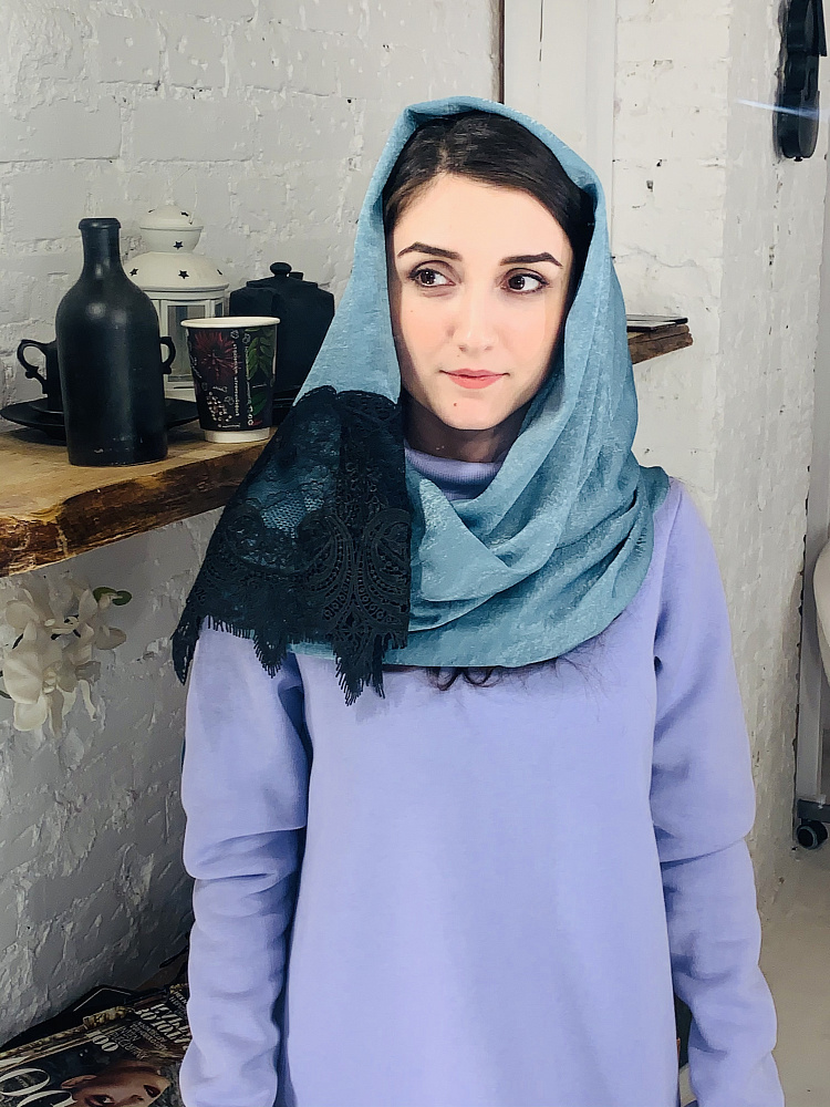 Отзывы о Турецкий палантин с кружевом Морская волна