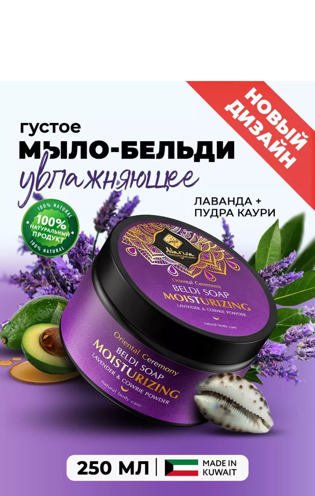 Натуральное мыло для тела Бельди благодаря мягкой консистенции позволяет воздействовать на кожу максимально деликатно, но при этом не менее эффективно. Антибактериальное мыло глубоко очищает и дезинфицирует жирную кожу, выравнивает её оттенок. Оно залечивает микроповреждения, стимулируя регенерацию клеток, избавляет от угрей, высыпаний, прыщей на лице взрослому. За счёт лёгкого скраб эффекта средство обеспечивает хороший эффект пилинга и отшелушивания, благодаря которому кожа избавляется от слоя ороговевших частичек, а раскрытые поры становятся более восприимчивыми к активному питанию жирными кислотами. Мыло обеспечивает мягкий очищающий и активный тонизирующий уход за проблемной кожей. Бодрящее воздействие обусловлено стимулирующими свойствами компонентов его состава. Оливковое масло, авокадо и жожоба глубоко увлажняют кожу, не оказывая при этом никакого эффекта утяжеления. Они отлично смягчают кожу, не оставляя после применения душа дискомфортного ощущения сухости и стянутости, а также повышают эластичные свойства тканей, продлевая молодость и красоту кожи. Масло огуречных семян и настой ромашки успокаивают сухую и чувствительную кожу, снимая любые болезненные ощущения и локальные раздражения. Молотые цветы лаванды и молотые ракушки каури выступают в роли абразивных компонентов, которые обеспечивают самую деликатную «полировку» кожного покрова, устраняя с его поверхности омертвелые клетки. Это необычное мужское и женское средство популярно как товары и принадлежности для бани и дачи. ПРИМЕНЕНИЕ: Используйте мягкое мылo для ванны, сауны или хаммама. Банное мыло следует вспенить, нанеся на круглую мочалку, и растереть на хорошо распаренной коже массажными движениями. После нанесения не смывайте мыло сразу - оставьте его для воздействия на пару минут, затем промойте кожу сначала тёплой, а затем прохладной водой